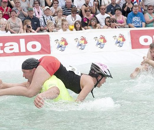 Άρση Συζύγων. Το όνομά του τα λέει όλα. Ξεκίνησε από την Φινλανδία και έχει τους εξής απλούς κανόνες: Οι άντρες συμμετέχοντες πρέπει να κουβαλήσουν τις γυναίκες τους στους ώμους για μία απόσταση 250 μέτρων με εμπόδια. Ο πρώτος που θα τερματίσει κερδίζει, ανεξάρτητα από τον ποιό τρόπο επέλεξε να σηκώσει την γυναίκα του. Το έπαθλο του νικητή είναι το βάρος της γυναίκας του σε μπύρα.